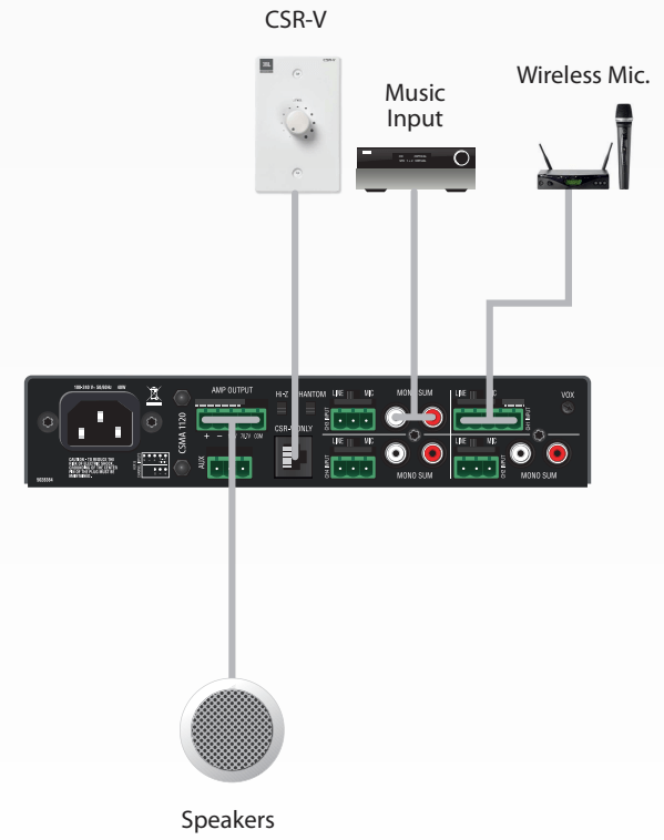 Ví dụ, CSMA180 được ghi là có “VOX ducking” (giảm âm nhạc tự động khi có mic thông báo) và “priority muting” - Đa đầu vào và kết nối dễ dàng