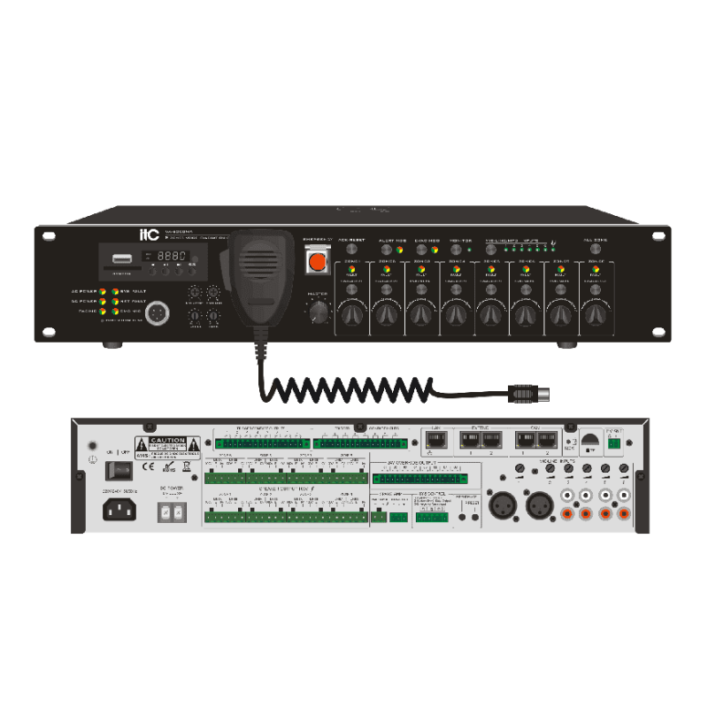 Bộ điều khiển sơ tán bằng giọng nói ITC VA-6200MA là thiết bị trung tâm trong hệ thống âm thanh thông báo – báo động khẩn cấp được thiết kế để phát thông báo sơ tán, cảnh báo và hướng dẫn bằng giọng nói trong các tình huống khẩn cấp như cháy nổ, sự cố tại tòa nhà.