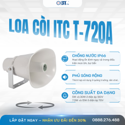 Loa còi ITC T-720A được trang bị nhiều tính năng nổi bật, mang lại hiệu quả sử dụng tối ưu trong hệ thống âm thanh công cộng. Đây là dòng loa chuyên dụng có khả năng phát âm thanh mạnh mẽ, rõ ràng và ổn định, phù hợp cho những không gian rộng lớn hoặc môi trường ngoài trời khắc nghiệt.