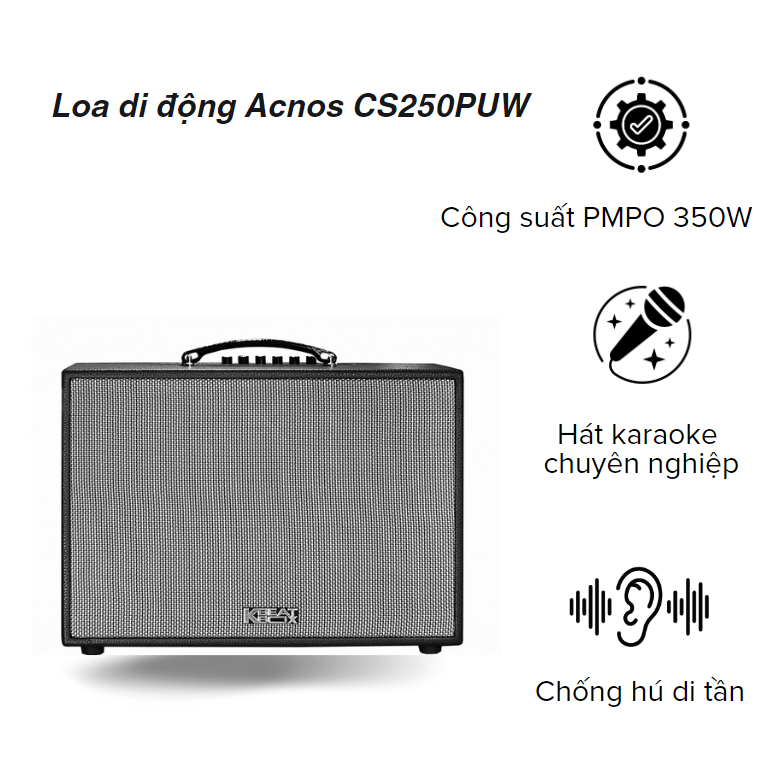 Thông số kỹ thuật: Loa karaoke di động vali Acnos CS250PUW
