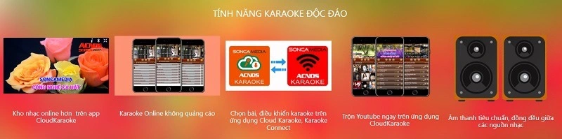 Với khả năng kết nối với ứng dụngCloudkaraoke, người dùng có thể dễ dàng kết nối kho nhạc khổng lồ chứa sẵn hơn 30 ngàn bài hát từ ứng dụng CloudKaraoke. Và bạn dễ dàng thể hiện giọng hát không cần mạng Internet với kho nhạc offline hơn 15.000 bài hát có thể tải về trên thiết bị di động.
