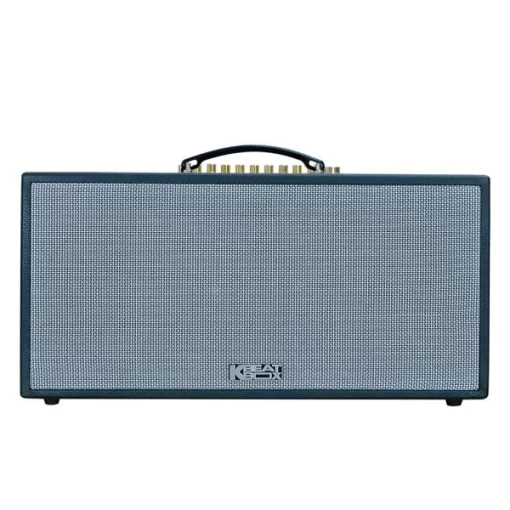 - Chất liệu thùng loa: bọc da cao cấp – lưới xám, có quai xách