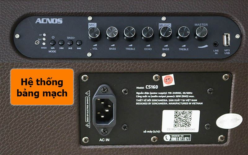 Acnos CS160 được trang bị đầy đủ thiết bị âm thanh phù hợp bao gồm 1 củ bass 16,5cm, 1 treble, 1 mid và mức công suất trung bình 50W, đạt đỉnh lên tới 300W cho trải nghiệm âm thanh vô cùng khác biệt. Âm thanh to hơn, chắc chắn hơn, độ chi tiết ở các dải âm thanh cũng được thể hiện tốt hơn. Đáp ứng được nhiều thể loại nhạc như trữ tình, bolero, pop, ballad, remix….