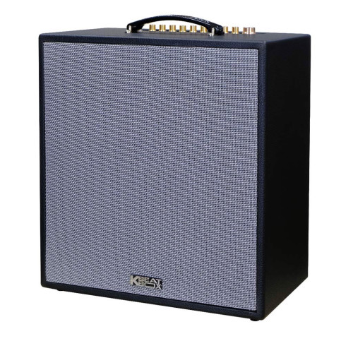 - Chất liệu: Thùng loa màu đen bọc da – quai xách, lưới xám có logo KBEATBOX