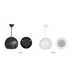 Về mặt ngoại hình, ITC T-200D sở hữu thiết kế dạng hình cầu cách điệu với những đường gân dọc tinh tế, mang đến cảm giác hiện đại và tối giản. Điểm cộng lớn của dòng sản phẩm này là sự đa dạng về màu sắc với hai phiên bản: T-200D màu đen quyền lực và T-200DW màu trắng thanh lịch, giúp các kiến trúc sư dễ dàng lựa chọn để phối hợp với tông màu chủ đạo của trần nhà. Với kích thước gọn gàng 255×220mm và trọng lượng 2.6Kg, loa được trang bị hệ thống dây thả chắc chắn, cho phép điều chỉnh độ cao linh hoạt để tiếp cận gần nhất với khu vực khách hàng, đảm bảo âm thanh luôn rõ ràng và truyền cảm nhất.