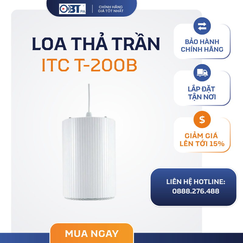 Trong các không gian kiến trúc hiện đại có trần cao như sảnh khách sạn, quán cà phê hay trung tâm thương mại, việc lựa chọn một thiết bị âm thanh vừa đảm bảo chất lượng, vừa giữ được tính thẩm mỹ là bài toán không hề dễ dàng. Loa treo trần ITC T-200B thế hệ mới ra đời như một giải pháp đột phá, phá bỏ sự khô khan của các dòng loa thông báo truyền thống để trở thành một món đồ nội thất trang trí đẳng cấp, mang lại trải nghiệm âm thanh toàn diện cho người dùng.